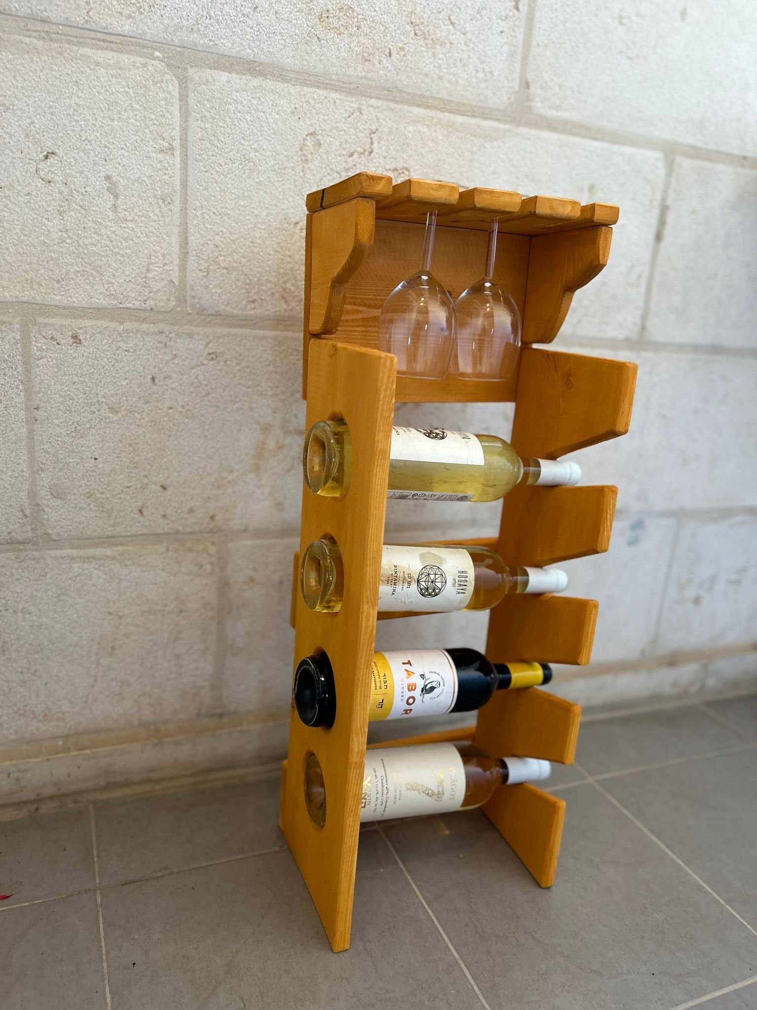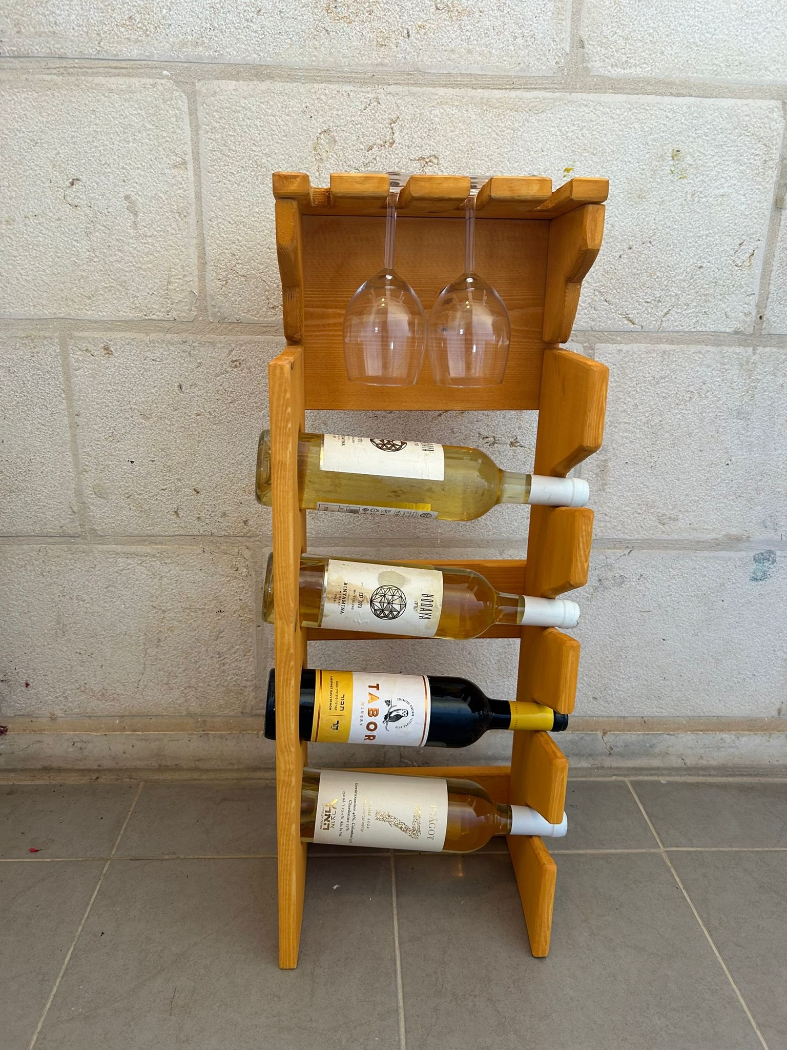 מעמד עיצובי 4 מקומות לאחסון בקבוקי יין + 4 מתלים לגביעים