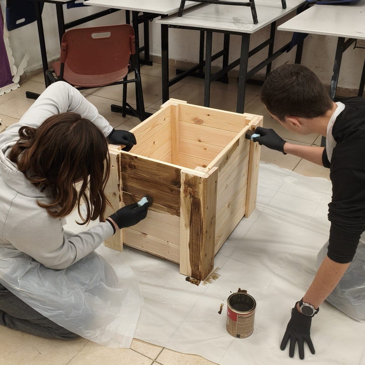 בתוך האדנית ישנה יריעה החוצצת בין העץ לאדמה שבתוכה תשימו את האדמה והשתילים.