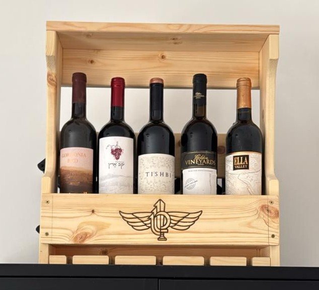 מעמד בקבוקי יין + 5 כוסות