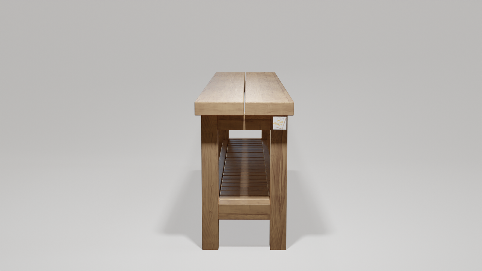 ספסל בעיצוב מיוחד ומדף תחתון לנעליים עשוי עץ איכותי וצבוע בשכבת הגנה מפני נזקי מזג האוויר